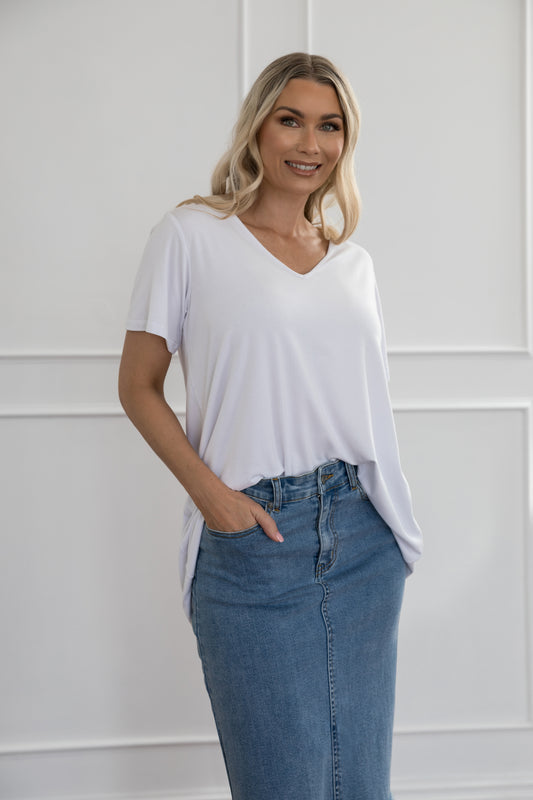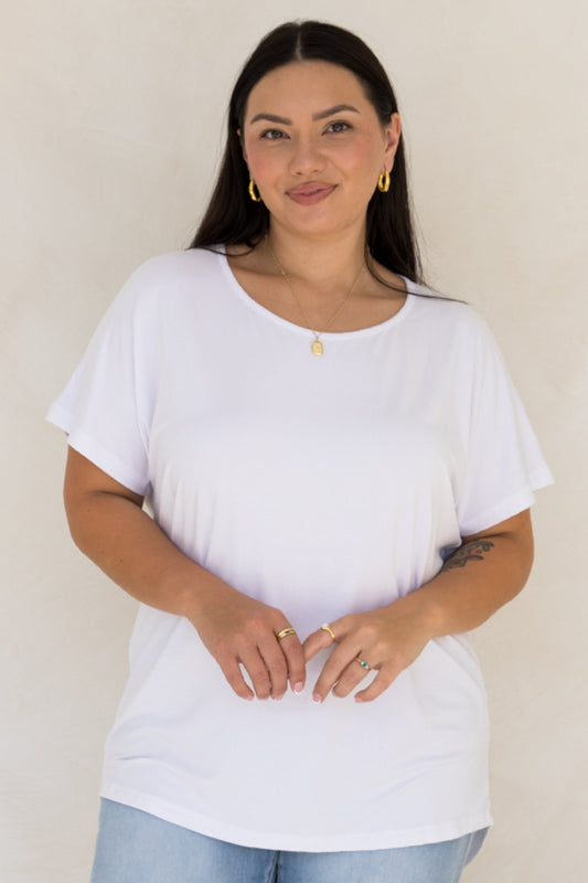 T-SHIRT Bamboo Short Sleeve Hi Lo Classic Length Top | White