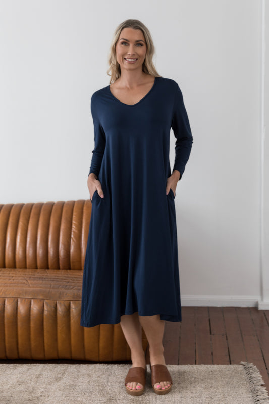 T-SHIRT Bamboo Mid Sleeve Classic/Midi Dress | Navy