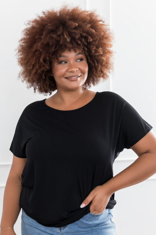 DESTINY Bamboo Short Sleeve Classic Length Top | Black