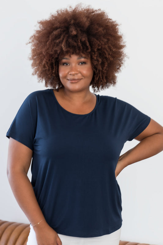 DESTINY Bamboo Short Sleeve Classic Length Top | Navy