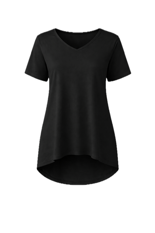 T-SHIRT Bamboo Short Sleeve Hi Lo Classic Length Top | Black