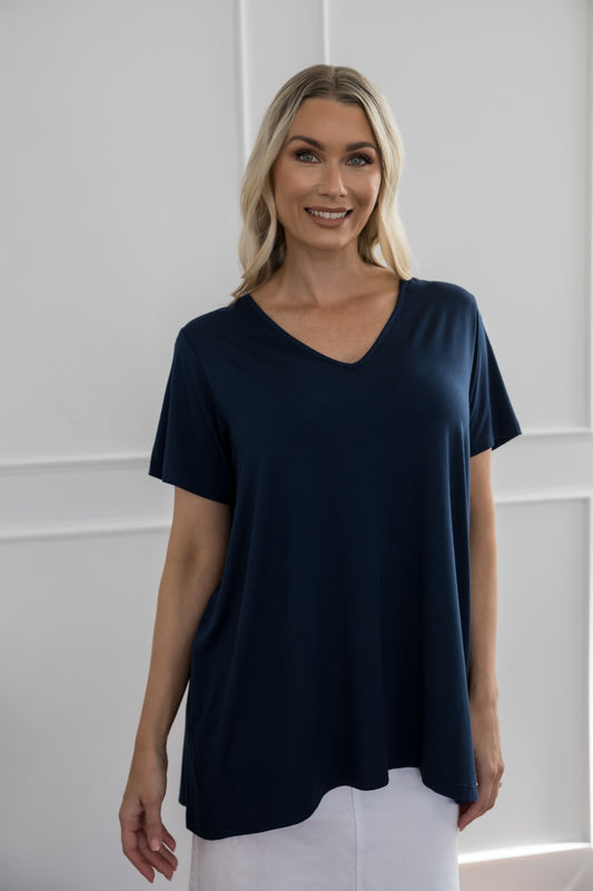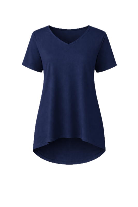 T-SHIRT Bamboo Short Sleeve Hi Lo Classic Length Top | Navy