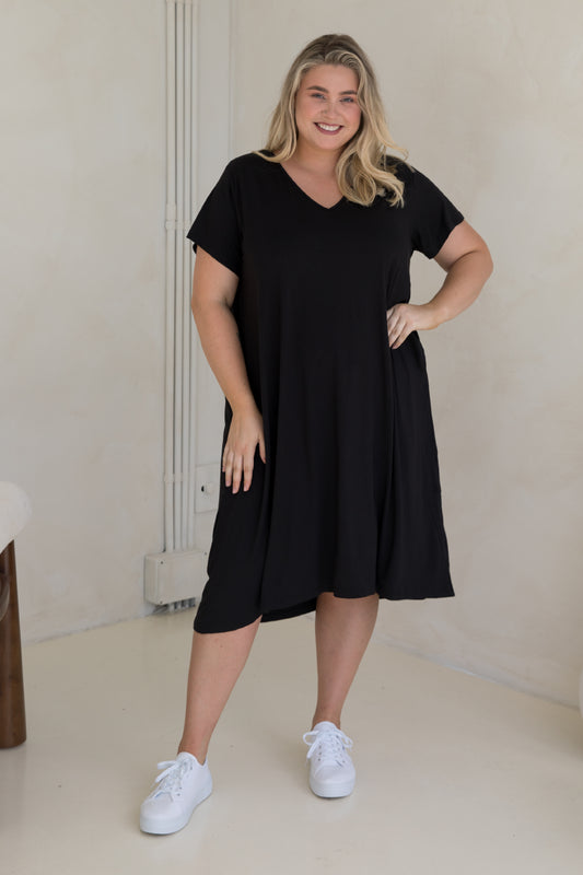 T-SHIRT Bamboo Short Sleeve Classic/Midi Dress | Black