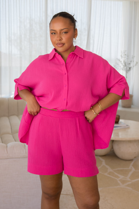 FLORENCE Cotton Classic Length Shorts | Flamingo | FINAL SALE