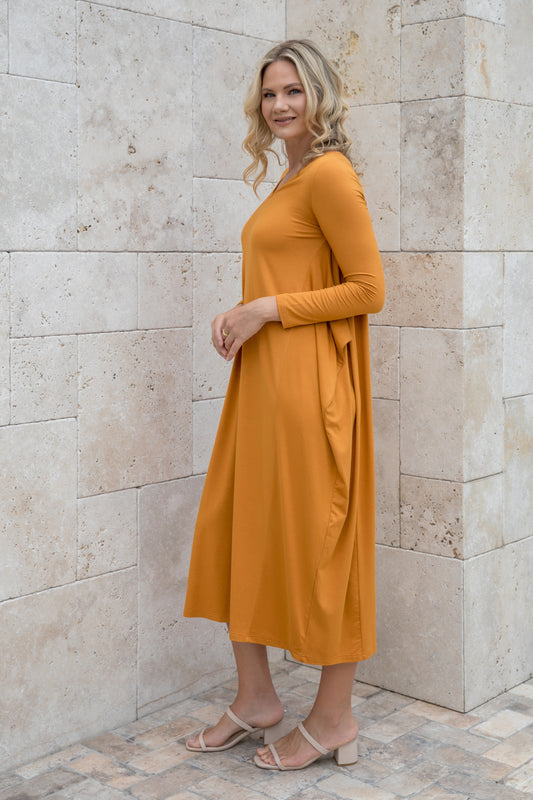GABRIEL Bamboo Long Sleeve Midi Dress | Cocoa | FINAL SALE