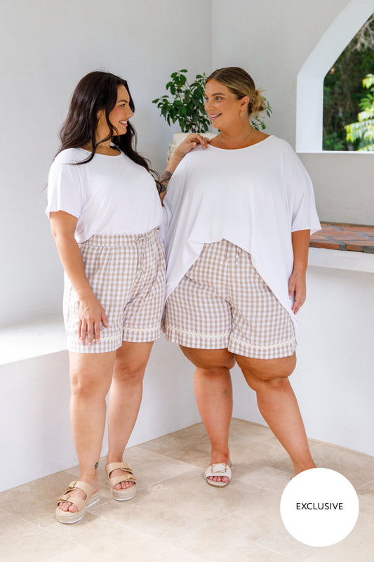 MILAN Lyocell Classic Length Shorts | Beige Gingham | FINAL SALE