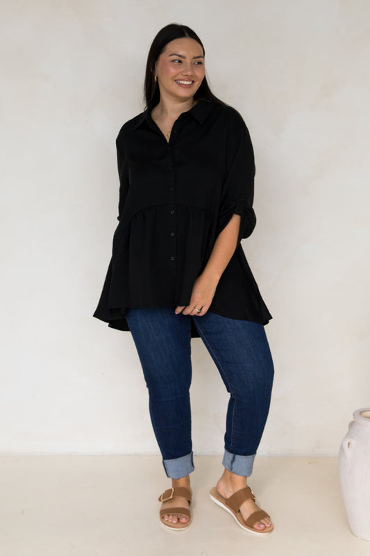 MILAN Lyocell Demi Sleeve Shortline Top | Black Gingham | FINAL SALE