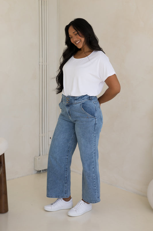 WYATT Denim Wide Leg Cropped Jean | Light Denim | FINAL SALE