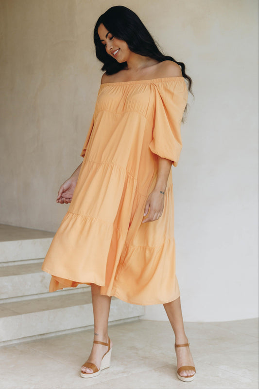 EFLIE RUFFLE Rayon Long Sleeve Midi Dress | Citrus | FINAL SALE