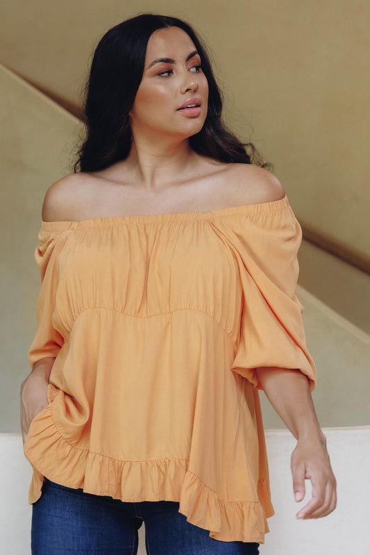 EFLIE RUFFLE Rayon Long Sleeve Longline Ruffle Top | Citrus | FINAL SALE