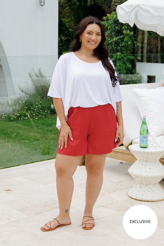 FLORENCE Lyocell Classic Length Shorts | Cherry Red | FINAL SALE