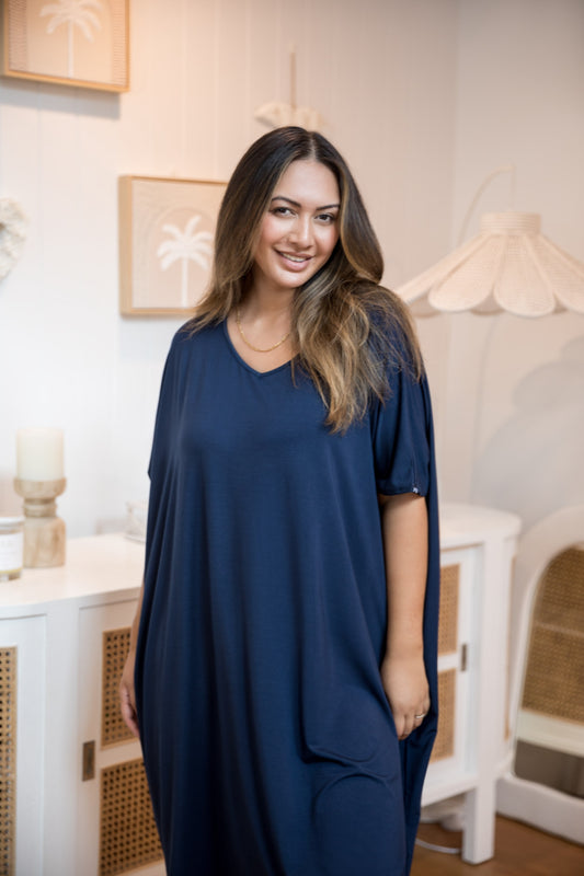 NICE Bamboo Short Sleeve Classic Length Dress | Navy