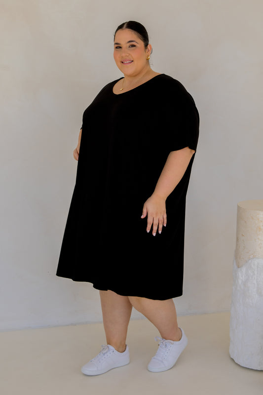 NICE Bamboo Short Sleeve Classic Length Dress | Black