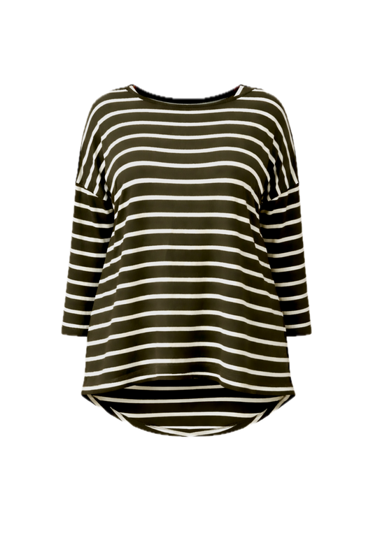 PIPPA Bamboo Long Sleeve Classic Length Top | Moss Green/White Stripe | FINAL SALE