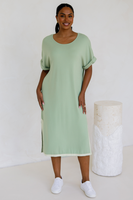 GIGI Lounge Short Sleeve Classic/Midi Dress | Sage