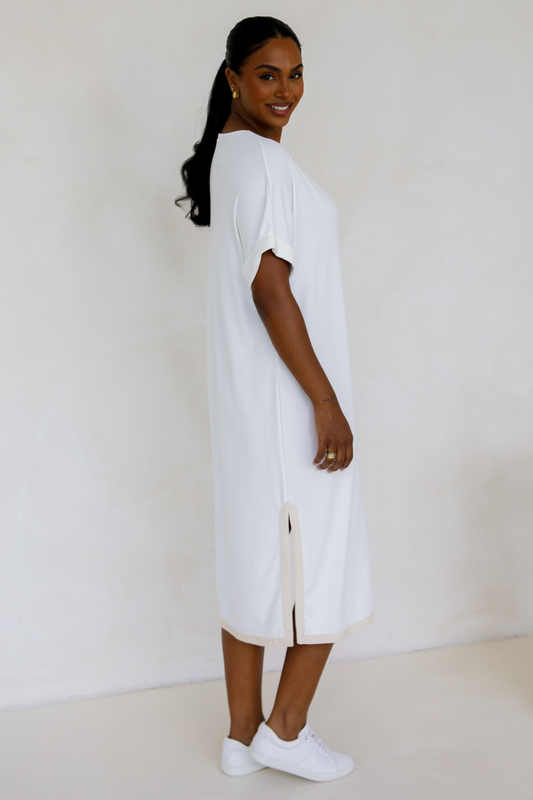 GIGI Lounge Short Sleeve Classic/Midi Dress | White