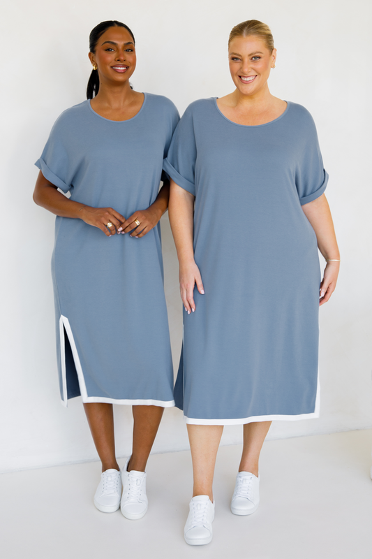 GIGI Lounge Short Sleeve Classic/Midi Dress | Dusk