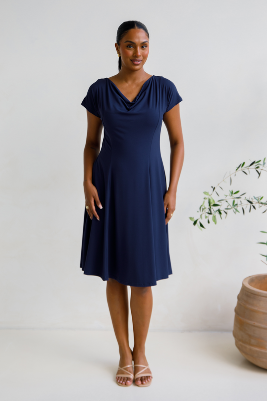 MIRACLE Bamboo Short Sleeve Classic Length Dress | Navy