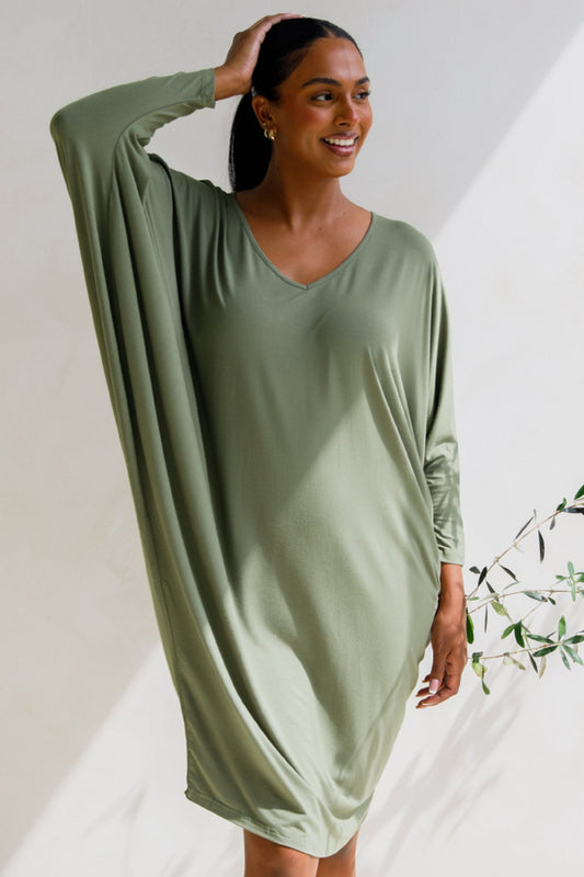 MIRACLE Bamboo Mid Sleeve Classic Length Dress | Fern