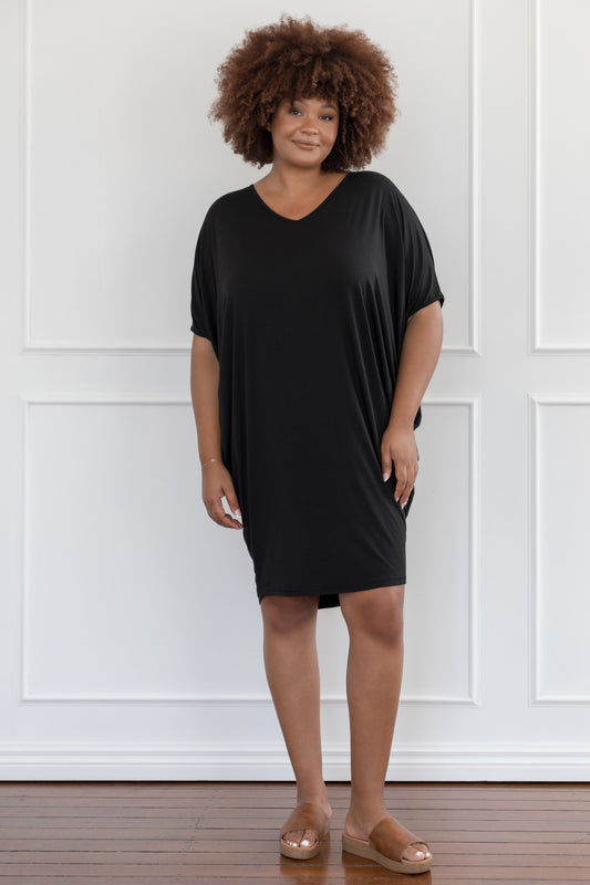 T-SHIRT Bamboo Short Sleeve Classic/Midi Dress | Black