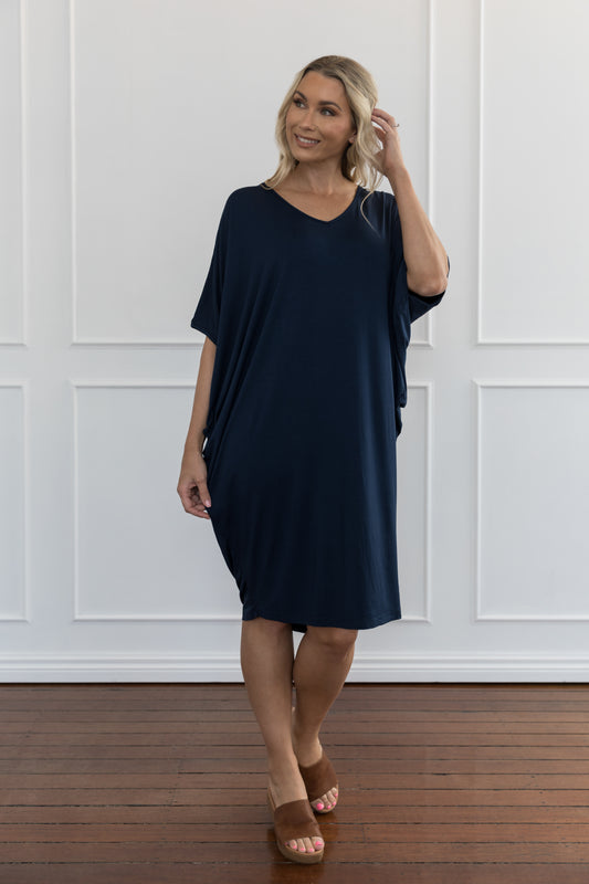 T-SHIRT Bamboo Mid Sleeve Classic/Midi Dress | Navy