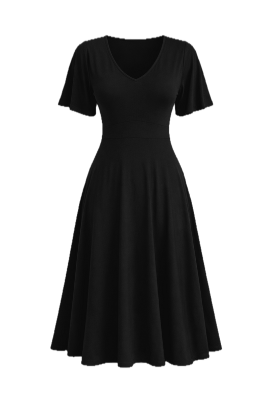 SIENA Bamboo Short Sleeve Classic/Midi Dress | Black | FINAL SALE
