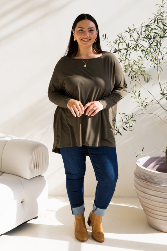 PIPPA Bamboo Long Sleeve Classic Length Top | Moss Green