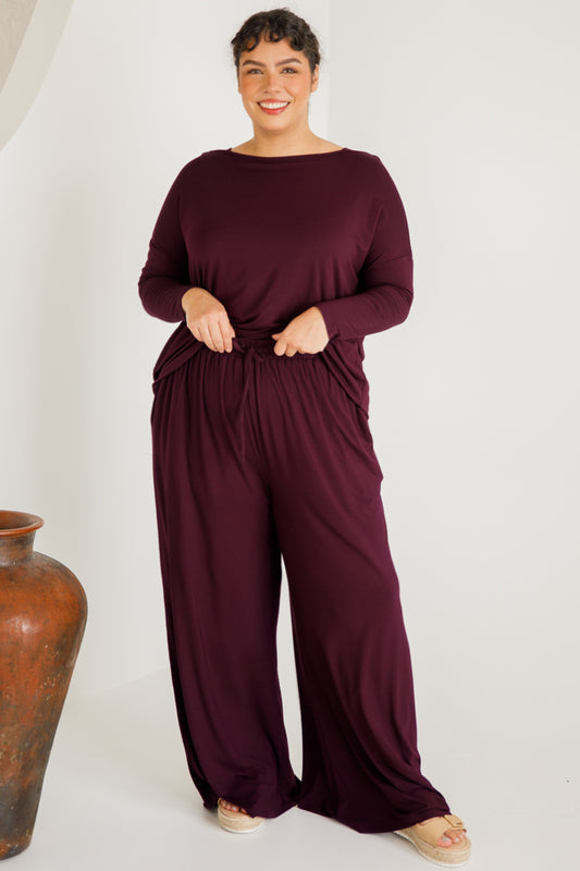 BELLA Bamboo Wide Leg Long Pant | Berry