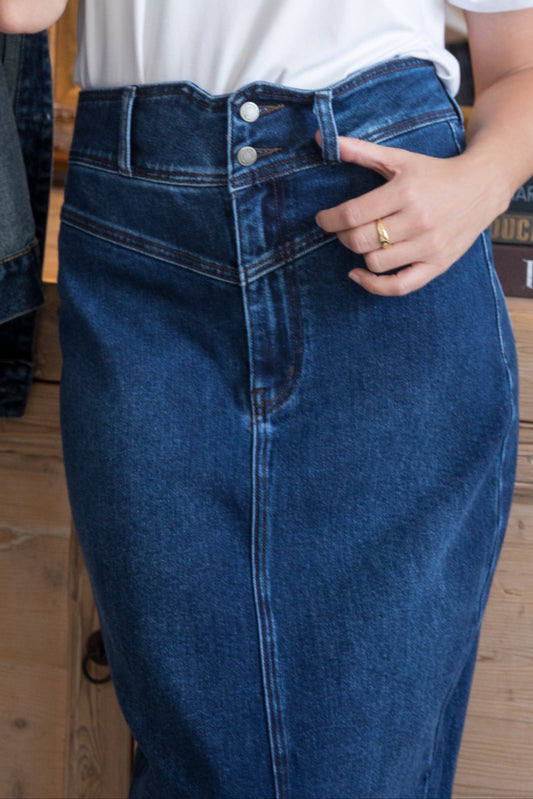 DAYA Rigid Denim Maxi Skirt | Dark Wash | FINAL SALE