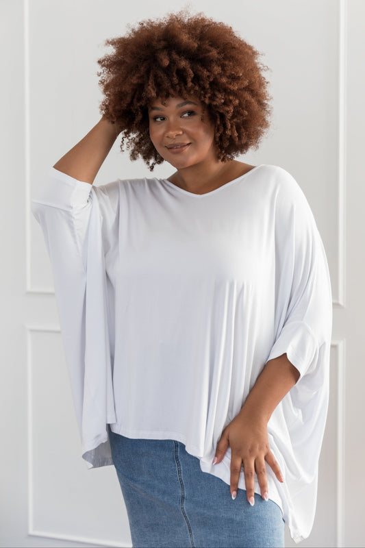 ESSENTIAL Bamboo Demi Sleeve Hi Lo Classic Length Top | White