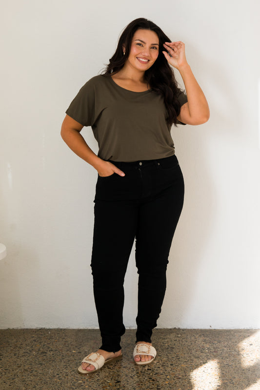 DESTINY Bamboo Short Sleeve Classic Length Top | Black