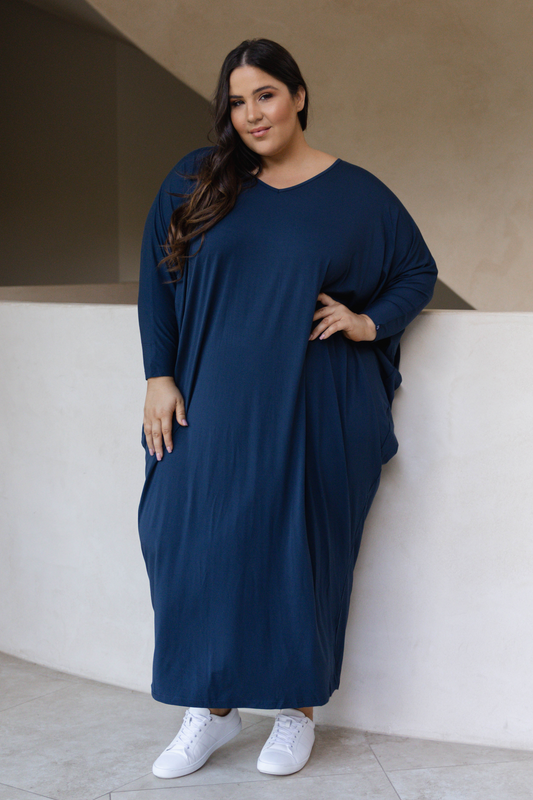 MIRACLE Bamboo Mid Sleeve Maxi Dress | Navy