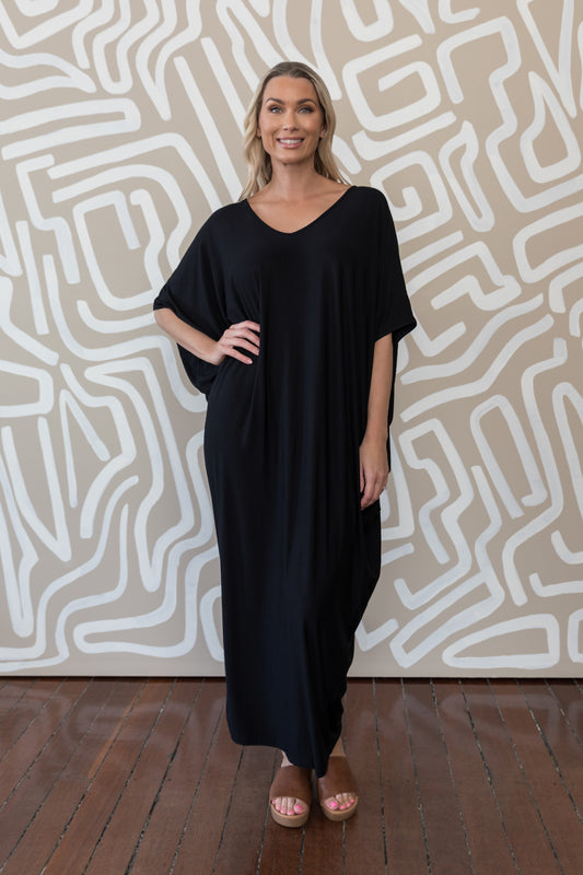MIRACLE Bamboo Short Sleeve Maxi Dress | Black
