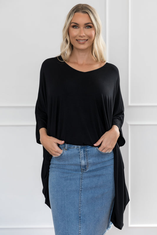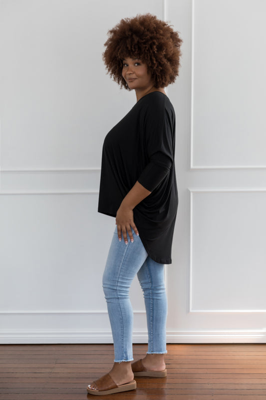 ESSENTIAL Bamboo Demi Sleeve Hi Lo Classic Length Top | Black
