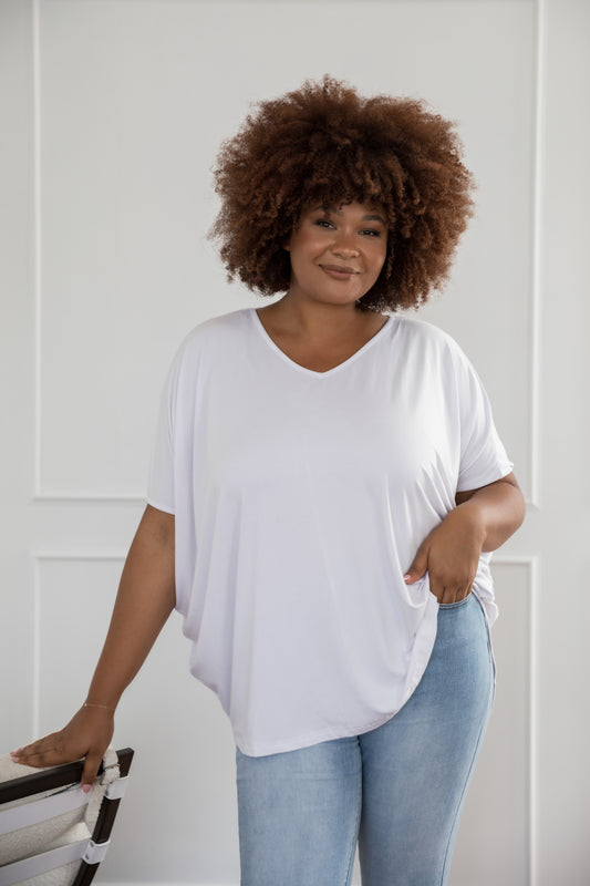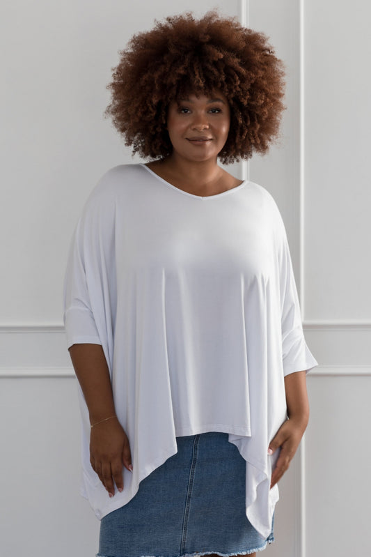 ESSENTIAL Bamboo Demi Sleeve Hi Lo Classic Length Top | White