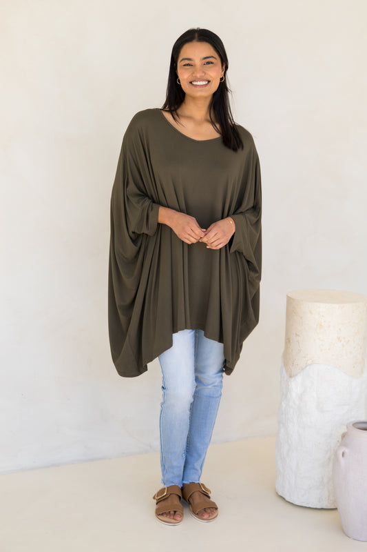 MIRACLE Bamboo Long Sleeve Hi Lo Top | Moss Green | FINAL SALE