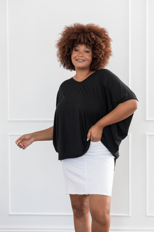 T-SHIRT Bamboo Short Sleeve Hi Lo Classic Length Top | Black