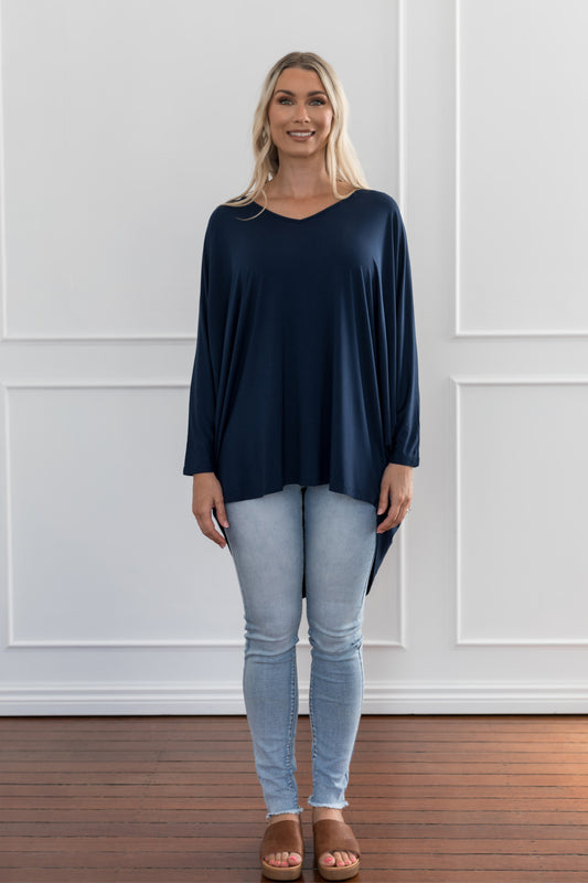MIRACLE Bamboo Long Sleeve Hi Lo Top | Navy