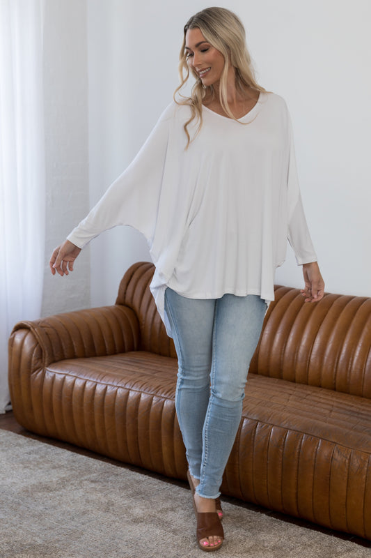 MIRACLE Bamboo Long Sleeve Hi Lo Top | White
