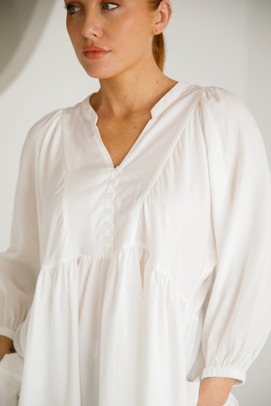 SHAE Tencel Long Sleeve Shortline Dress | White | FINAL SALE