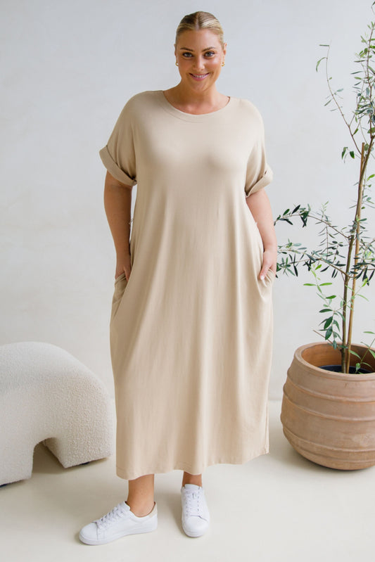 ALTHEA Lounge Short Sleeve Midi Dress | Portobello Beige