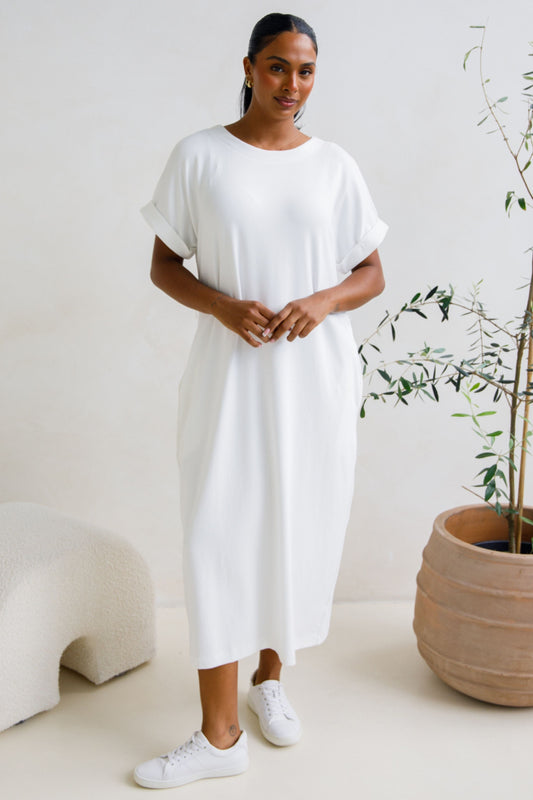 ALTHEA Lounge Short Sleeve Midi Dress | White