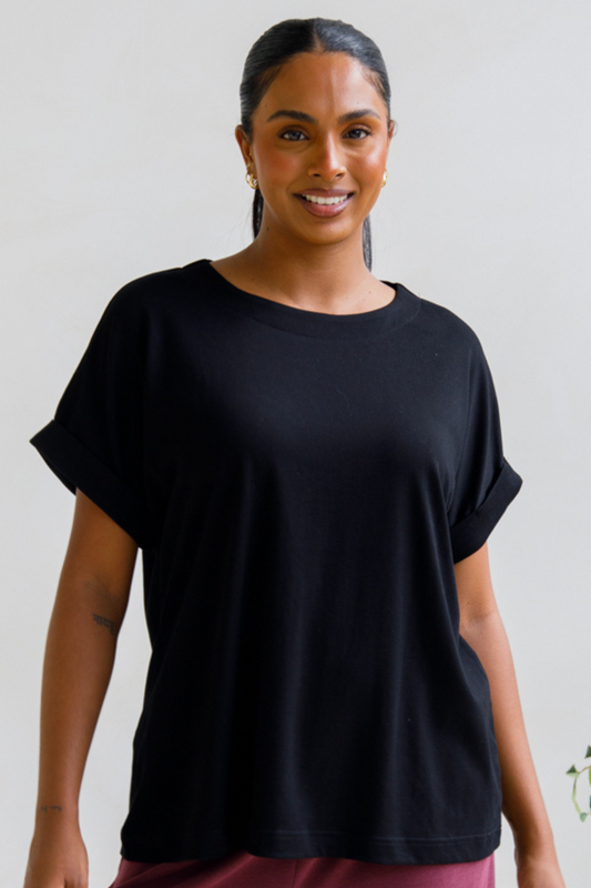 ALTHEA Lounge Short Sleeve Classic Length Top | Black | FINAL SALE