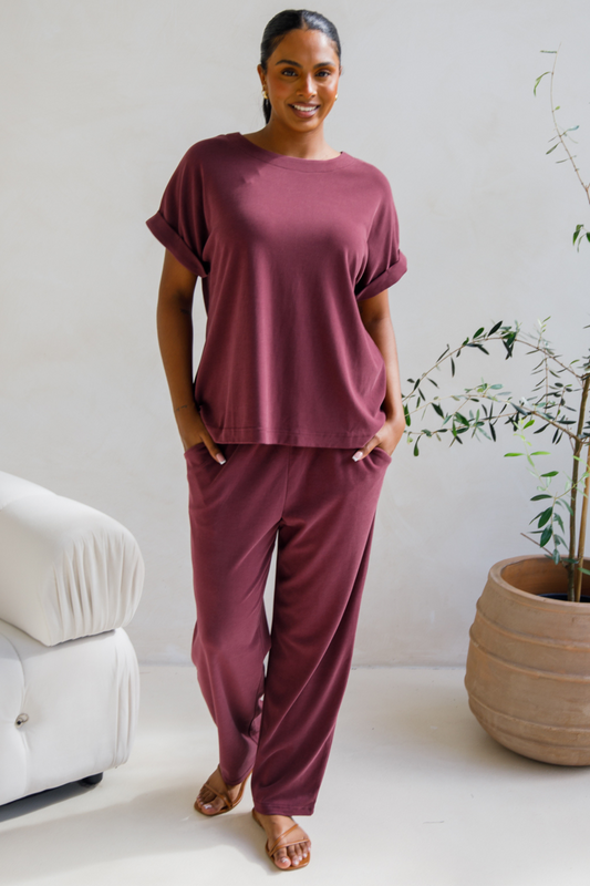 ALTHEA Lounge Short Sleeve Classic Length Top | Shiraz