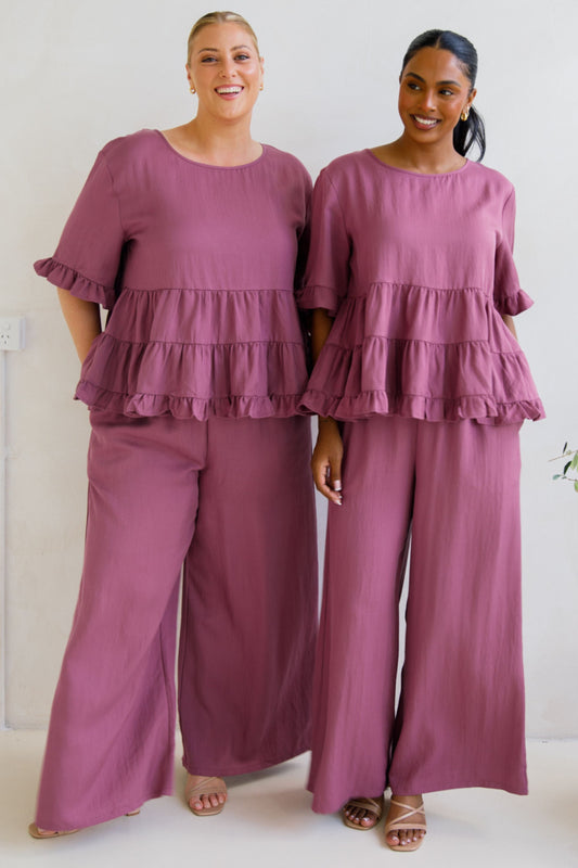 ELLA Lyocell Wide Leg Long Pant | Mulberry