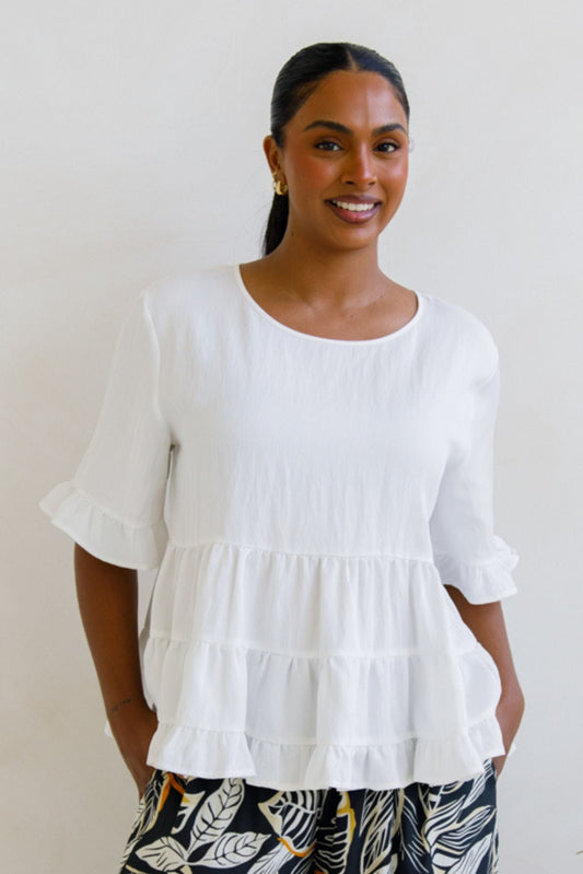ELLA Lyocell Half Sleeve Shortline/Classic Length Top | White | FINAL SALE