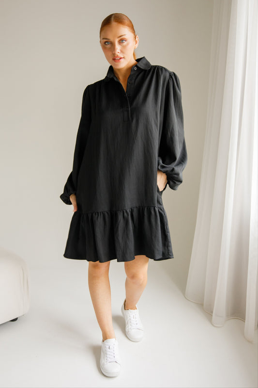 SHAE Lyocell Long Sleeve Shortline Dress | Black