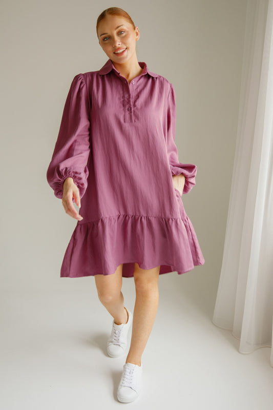 SHAE Lyocell Long Sleeve Shortline Dress | Mulberry