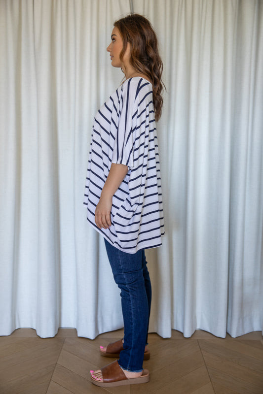 NICE Bamboo Short Sleeve Classic/Longline Top | White/Navy Stripe