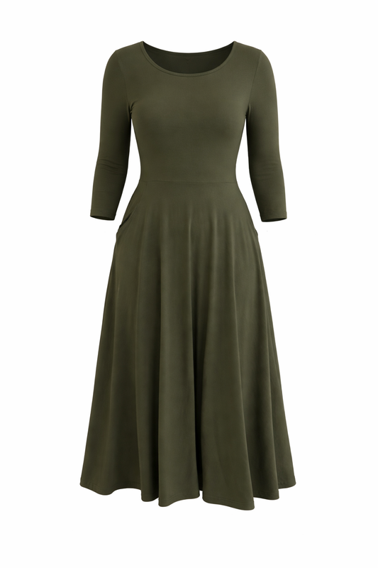 PENELOPE Bamboo Demi Sleeve Classic/Midi Dress | Moss Green | FINAL SALE